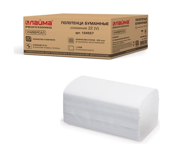 Бумажные полотенца ЛАЙМА 250 штук, КОМПЛЕКТ 20 штук, УНИВЕРСАЛ, белые, 23х23, ZZ, 124557
