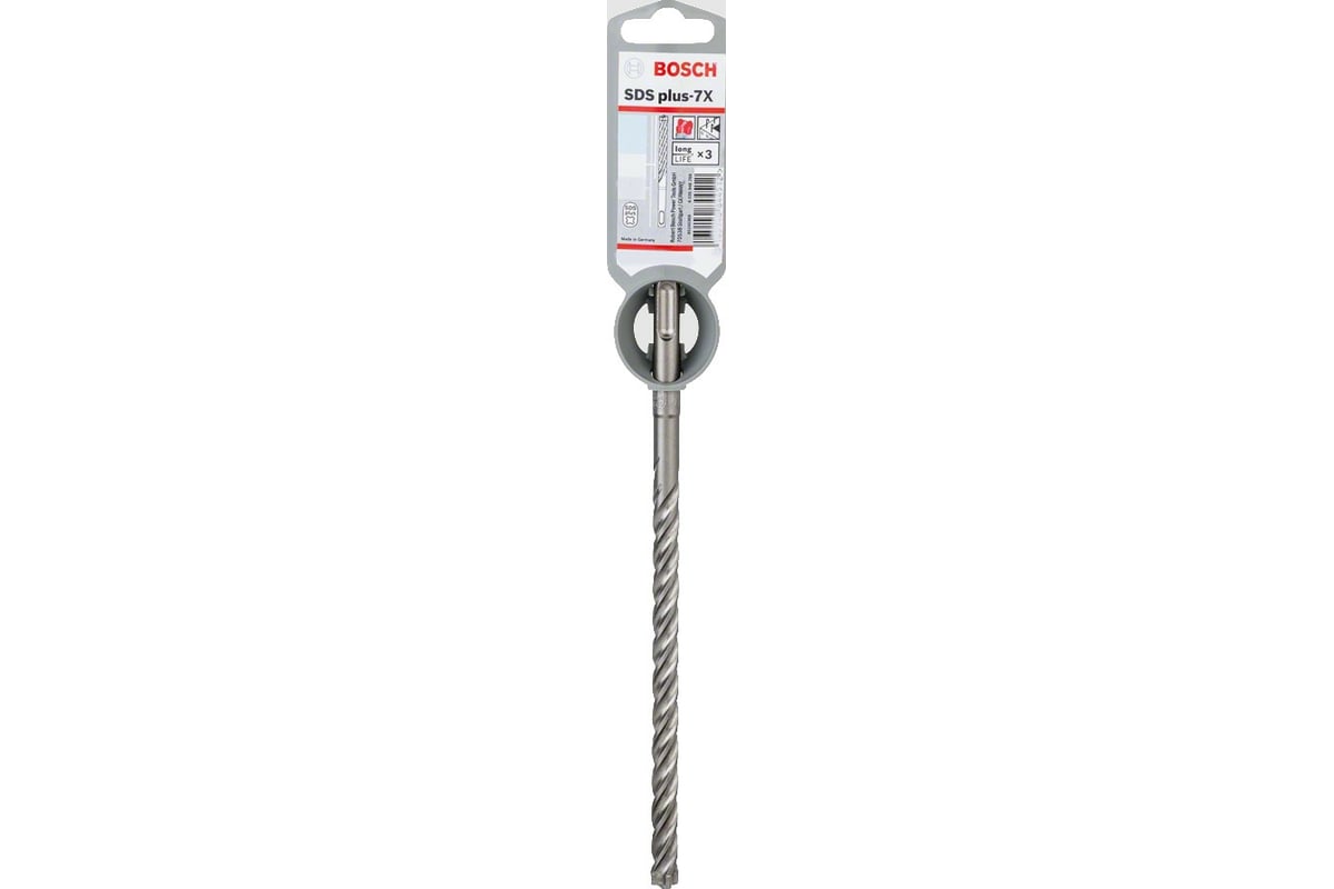 Бур SDS Plus-7X 17x150x215 мм Bosch 2608579136 предназначен для сверления железобетона, камня, бетона, строительных бетонных блоков с помощью перфоратора.