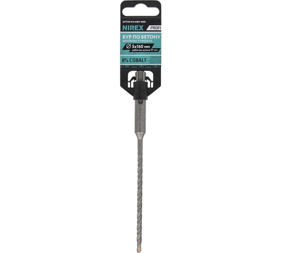 Бур по бетону с двойной спиралью NIREX Profi SDS+ предназначен для сверления отверстий в армированном бетоне, кирпичной кладке, а также в натуральном и искусственном камне. Изготовлен из легированной инструментальной стали с карбидным наконечником, содержащим 8% кобальта.