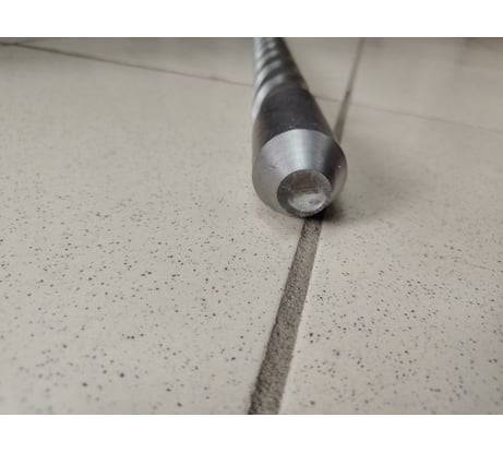 Бур оснащен шнековой спиральной канавкой и вольфрамовым наконечником крестообразной формы. Хвостовик бура отличается более длинными полозьями, он надежно закрепляется в патроне, поэтому изделие может применяться с мощными перфораторами.