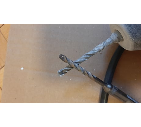 При первом же сверлении потолка оплавился "победит". То же отверстие дошел старым тупым буром 6мм. Вместо победита олово какбудто
