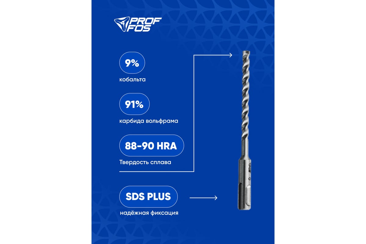 Бур с твёрдосплав. головкой SDS-plus PROFFOS (8x150x210мм) 3 грани МЕГАТУРБО 505833