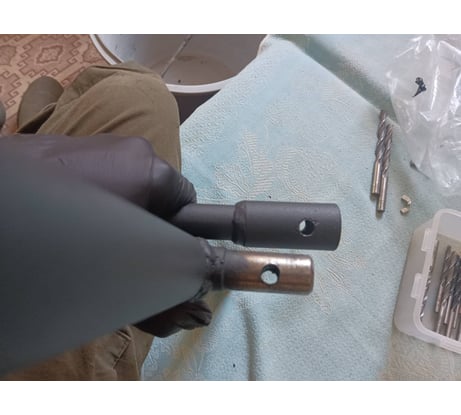 ребята на сделке - не до "мелочей",но на ручке окалина от сварки,заусенцы внутри ручки от реза по размеру,и количество витков на шнеке 1 вместо 3.может чтобы шнек не упарывали силушкой,а может экономия..Под столбы забора бурил рыбацким старым буром,там 5-6 витков,нравилось;здесь на фотке - 3,взял,бурит,но меняйте фотку раз изменения в конструктиве.Ну и ручка как не вставала плотнячком к шнеку,так и сейчас без изменений
