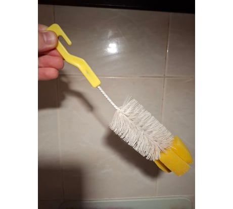Ерш с поролоновым наконечником. Удобно мыть банки, френч-пресс и другую посуду, в которую не пролезает рука. Конец металлического каркаса также обтянут поролоном и не царапает дно.