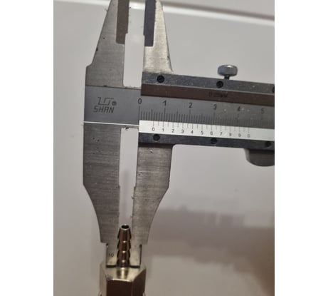 Штуцер 5.9 мм, болтается в шланге, зафиксировать без подмотки невозможно.
