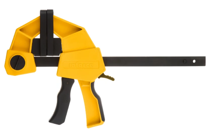 Нужно склеить или обработать заготовки из дерева или металла шириной до 15 см? Пригодится струбцина INFORCE 06-03-21. За счет максимальной силы сжатия 230 кг она надежно фиксирует детали. Рычажный зажим позволяет плавно регулировать силу сжатия, а пластиковые накладки на губках не повреждают поверхность заготовки.