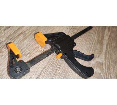Хорошая, практичная струбцина. Покупал для столярных и плотницких работ по дому (2 шт.). Очень выручили, т.к. работы проводил один, без помощников. Использовал для зажима реек при расшивке доски 300х60х3000 мм, для нарезки и обрезки брусков. Работал ручной эл. циркулярной пилой мощностью 2 кВт 4200 об./ мин. с регулятором оборотов. Даже пришлось применить струбцины в слесарных работах: сверление отверстий в металлических заготовках толщиной 1,5 - 2,5 мм. С нагрузкой струбцины справились. Устанавливаются и снимаются они быстро. Кроме того, сняв нижний зажим и установив его со стороны верхнего, струбцина работает в обратном порядке - на разжимание деталей. В столярных и плотницких работах бывает необходимость поджать детали друг к другу, но с упором с нерабочей стороны. Хорошая вещь. В хозяйстве нужная. Какой ресурс заложен в механизм струбцины, неизвестно. Но сейчас работает.