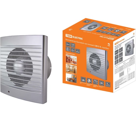 Вентилятор бытовой настенный 120 С-5 цвет серебро – необходимое устройство для обеспечения качественной вентиляции в вашем доме. В наборе к вентилятору присутствует защитная сеткой от насекомых (антимоскитная сетка). Устанавливается бытовой вентилятор в ванную, туалет, кухню, совмещенного санузла и другие помещения для вытяжки, способствует устранению избыточной влажности и нейтрализации неприятных запахов. Вентиляционный вентилятор устанавливается непосредственно в проем вентиляционной шахты. Крепление осуществляется при помощи шурупов, которые идут в комплекте. Вентилятор для вытяжной вентиляции при помощи редуктора подходит для монтажа с воздуховодами диаметром 125 и 150 мм, а также для квадратных отверстий соответствующих размеров. Преимуществом модели является низкий уровня шума в 45ДБ в совокупности с классом защиты устройства IP24, который позволяет сохранять комфортное состояние человеку, даже при работе вытяжки в ванной, туалете или иного помещения с повышенной влажностью, и высокая производительность 150 м3/ч. Вентилятор в ванную вытяжной электрический имеет встроенную защиту двигателя от перегрева, наличие индикатора сети на передней панели. Питание строительного устройства осуществляется от сети переменного тока с напряжением 230В через кабель или шнур. Корпус вентилятора, выполнен из прочного и качественного пластика. Модель, без сомнения, подчеркнёт интерьер любого помещения, при этом выполняя полезные функции по очистке воздуха.
