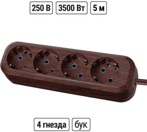 Технические характеристики TDM ELECTRIC У04 Эко 4 гнезда, 5метров, 2П+3, ПВС 3х1мм2 бук 16А/250В SQ1303-3012