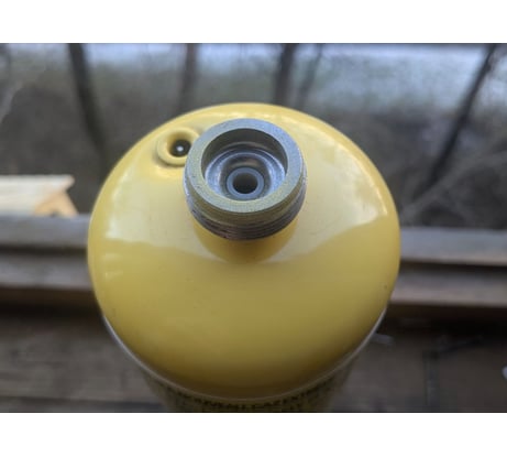 Смесь вполне себе нормальная, горит стабильно в любом положении баллона. Но мне попался баллон у которого краска попала на резьбу и торец сединения, которое прижимается к уплотнительному кольцу горелки и образуют сеть мелких зазоров через которую газ потихоньку уходил. Сразу не обратил на них внимание, но когда после месяца хранения с навинченной горелкой от половины баллона не осталось ничего, открутив горелку заметил эти следы краски.