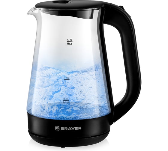 Чайник электрический BRAYER 6112BR-BK 2200 Вт, 1,7 л, стеклян.корп, автоотключ BR6112BK