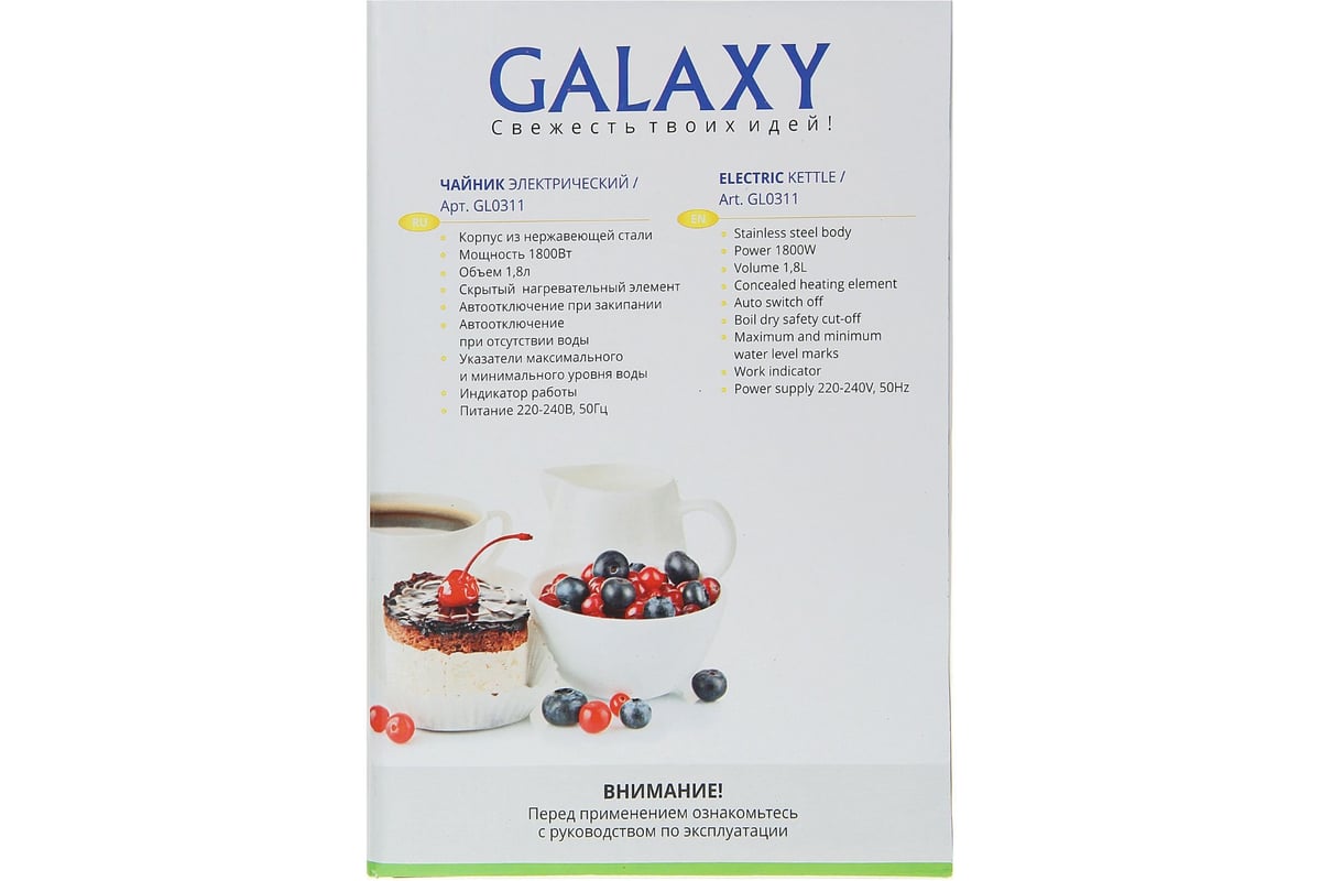 Чайник электрический Galaxy GL 0311, серый, металл, 1800 Вт, 1,8 л, указатель максимального уровня воды 5010103110