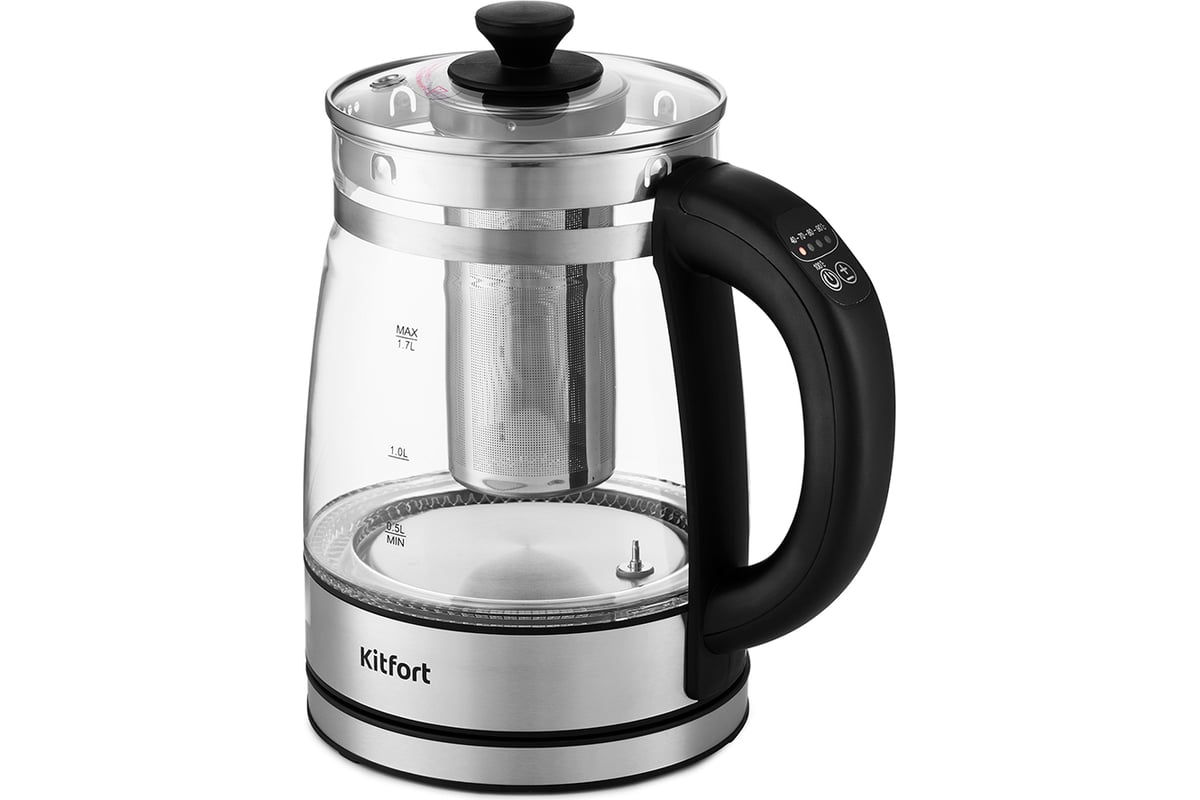 При выборе чайника остановились на модели kitfott KT6119. Понравилась широкая съемная крышка, удобно мыть и наливать воду. Если немного разогнуть фиксаторы, то крышка держится хорошо и не подливает. Наличие температурных режимов удобно при заваривании разных сортов чая, подсветка отличается при разных режимах. Шумит тише в сравнении с другими стеклянными чайниками и закипает быстро. Ситечко для заварки, но нам не пригодилось пока. Мы пользуемся только стеклянными чайниками. Этот, пожалуй, самый удобный. Спасибо производителю.