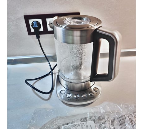 В конструкции используется стекло и нержавейка. Полное отсутствие запахов в процессе эксплуатации. Наличие возможности заварки чая. Очень удобная функция подогрева до заданной температуры. Эргономичный. Широкая горловина для набора воды, которая позволяет комфортно промыть чайник.