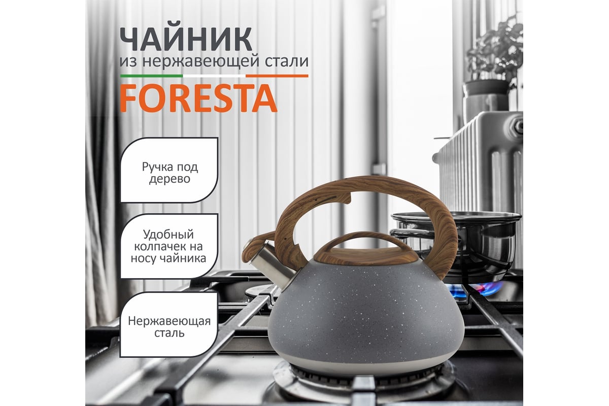 Чайник Mallony FORESTA объем 2.5 л из нержавеющей стали с ручкой под дерево 007192 предназначен для использования дома или в офисе.