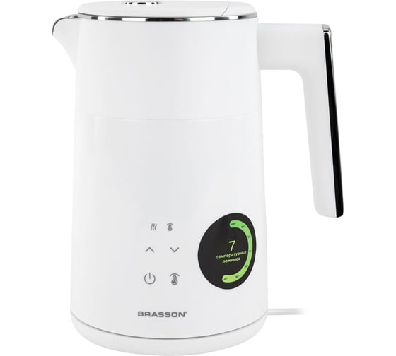 Чайник с двойными стенками и терморегулятором BRASSON KT-264, 1,5л, 2200 Вт, дисплей, белый, 455193