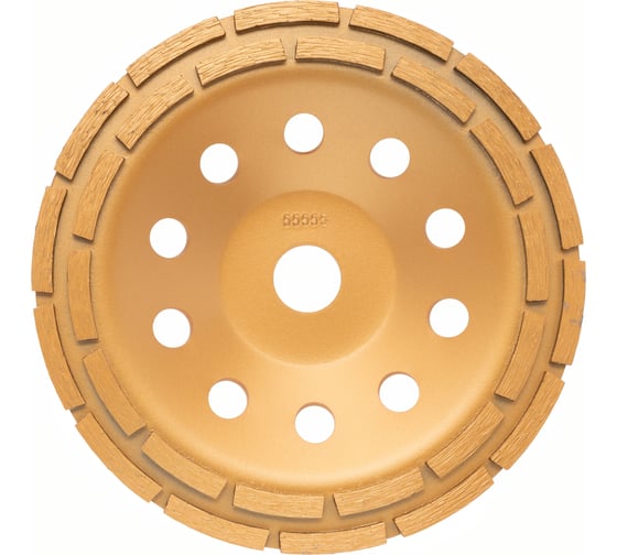 Чашка выполнена из металлического сбалансированного корпуса, на котором прикреплены алмазные сегменты. Характеризуется более продолжительным ресурсом работы по сравнению с однорядной чашкой. Рабочая поверхность не требует дополнительного водяного охлаждения.