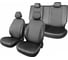 Авточехлы изготовлены из двух видов экокожи черного цвета: гладкой и перфорированной. Перфорированная экокожа используется в центральных элементах, что обеспечивает циркуляцию воздуха.