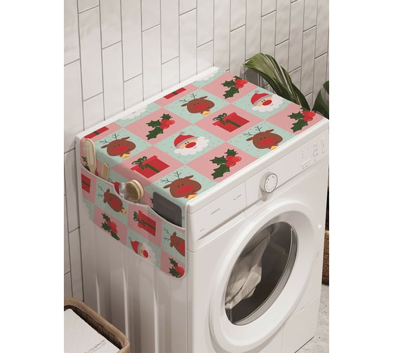 Чехол накидка для стиральной машины с рисунком AMBESONNE "дед мороз в квадрате" 45 на 120 см cwm_419863_120x45