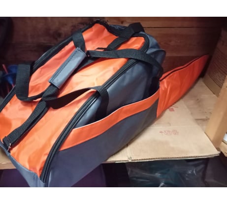 Сказать чтобы ах не скажу, но лучше все же, чем ни чего! Сумка из такого клеенчатого материала не знаю как правильно он называется, ну большинство китайских дешевых сумок шьют из него, цвет норм, для моей 353 Эхи как родная, места для пилы с избытком, дно данной сумки жесткое, есть карманы (ключи или цепь там хранить не будешь, а для перчаток и ветоши самое то), учитывая что дно жесткое и много места внутри при транспортировке там на дачу или на объект можно будет разместить пару литровых канистр с маслом, ключи, цепь, вообщем все то что нужно для работы. По длине шины тоже все нормально шина в пластиковом чехле заходит с малюсеньким натягом, и это не выглядит некультяпно. Сверху трехсторонний клапан на молнии имеет два замка (на 5ый день использования у одного замка отвалился лепесток, засовывать пилу через этот клапан удобно. Да кстати в швах прострочки имеется армирование, для некой каркасности и держания формы сумки. Есть плечевой ремень, им не пользовался не знаю как удобно или нет, по бокам еще 2е ручки в верху с липучая накладка соединяющая ручки в одну.