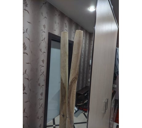 Кривой, сучок посередине (сломается сразу), d27 мм (заявлен 30мм), покупал за 117 руб.