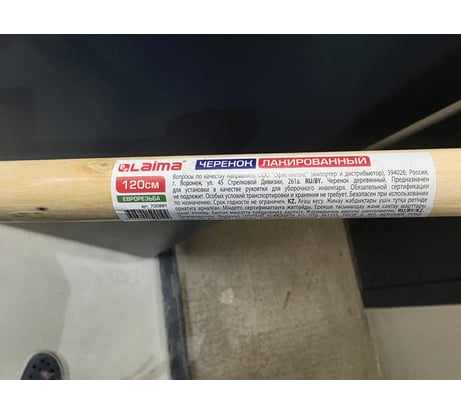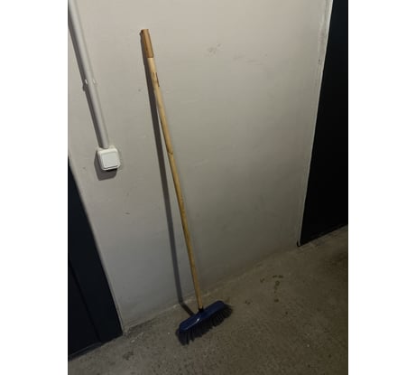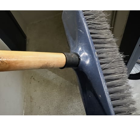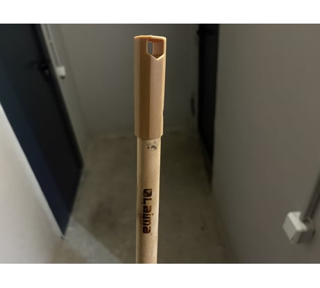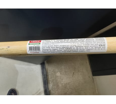 Отличный деревянный лакированный черенок подошел как родной вместо предыдущего металлического полого, который не выдержал после нескольких уборок. На черенке есть пластиковый наконечник с отверстием удобно вешать метлу на крючек