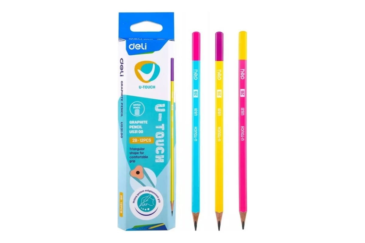 Чернографитный карандаш DELI U-Touch EU53100-1 2B трехгранный тополь коробка европодвес, 12 шт 1125080