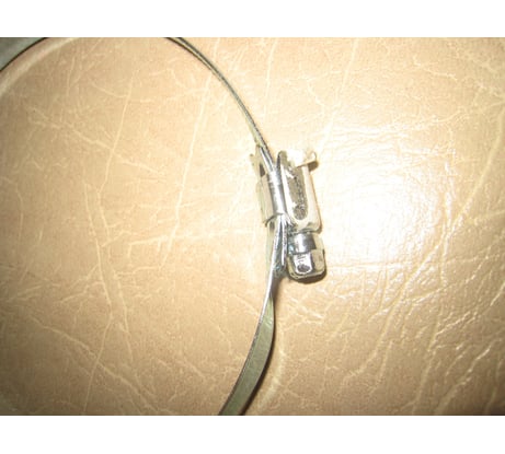 Сколько не крутил хомутов - такого еще не было. Даже еще не одетый хомут при попытке закручивания гнется вокруг своей продольной оси - и ни туда, ни сюда. Подумал, что мешает наклейка. Но нет - после ее удаления ничего не изменилось.