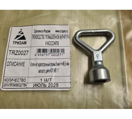 Четырехгранный ключ ТРИЗАМ грань 8 мм, H=46,5 мм, металл, покрытие цинк К01.48.1.1 TRZ0027.