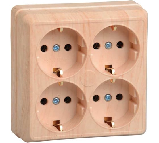 Расходные материалы для четырехместной розетки GENERICA РС24-3-ОС ОКТАВА с заземляющим контактом, 16А, открытой установки, сосна ERO41-K03-16-DC