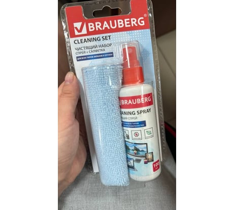 Чистящий набор BRAUBERG для ухода за экранами плазменных панелей, ЖК-мониторов, телевизоров и смартфонов легко удаляет пыль, отпечатки пальцев и другие загрязнения.