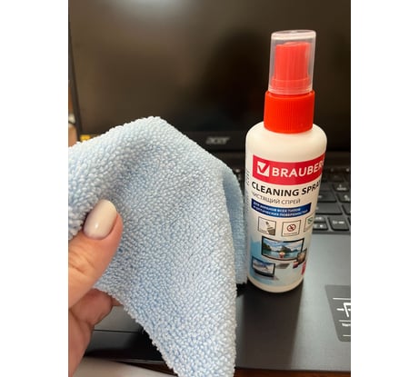 Отличный набор. Компактный. Салфетка не оставляет разводов и ворсинок. Спрей легко распыляется. Запах нейтральный. В идеале распылять надо на охлажденную технику.