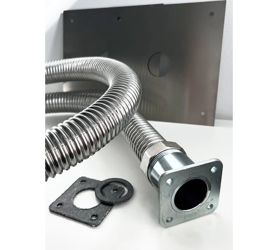- Гофрированная труба из нержавеющей стали (наружный диаметр 40,7 мм, внутренний 36 мм), развальцованный под накидную гайку 1 ½ “
