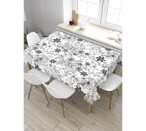 Скатерть JoyArty Черные цветочки, прямоугольная, из сатена tc_31189_120x145