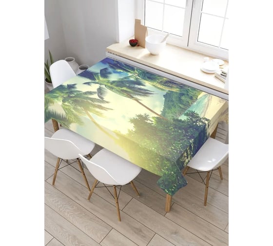 Скатерть JoyArty Экзотический пляж с пальмами, прямоугольная, из сатена tc_7516_120x145