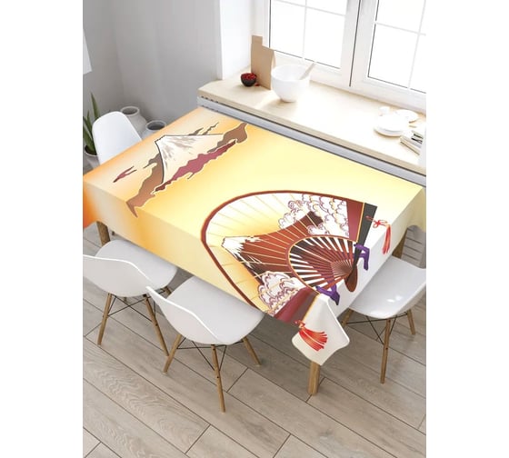 Скатерть прямоугольная из сатена JOYARTY Фудзияма на японском веере tc_29429_120x145