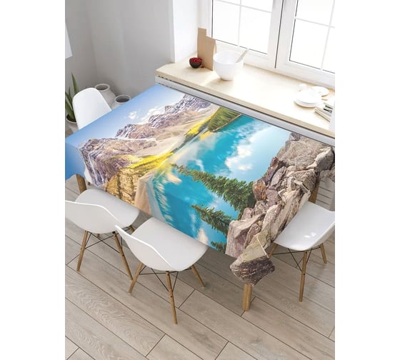 Скатерть прямоугольная из сатена JOYARTY Хрустальная река возле гор tc_15182_120x145