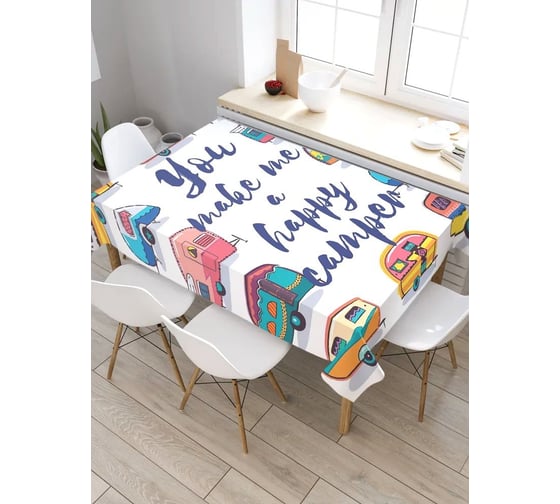 Прямоугольная скатерть из сатена JoyArty Счастливый кемпер tc_25803_120x145