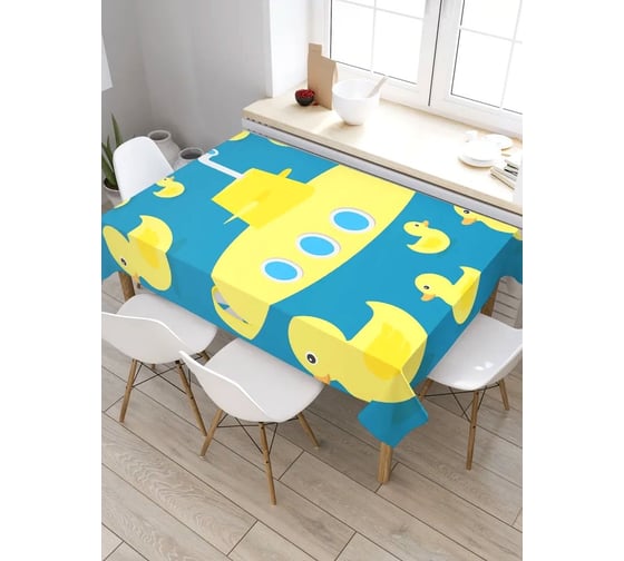 Прямоугольная скатерть из сатена JoyArty Субмарина и уточки tc_22349_120x145