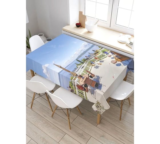 Прямоугольная скатерть из сатена JoyArty Терраса с видом на море tc_34880_120x145