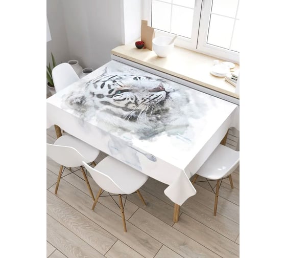 Прямоугольная скатерть из сатена JoyArty Тигр альбинос tc_37379_120x145