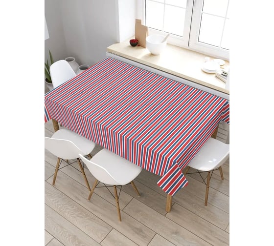 Прямоугольная скатерть из сатена JoyArty Трехцветные полосы tc_31859_120x145
