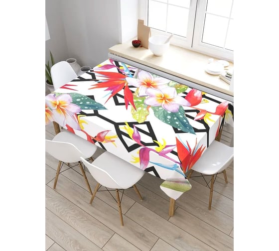 Прямоугольная скатерть из сатена JoyArty Тропические цветы на решетке tc_38860_120x145