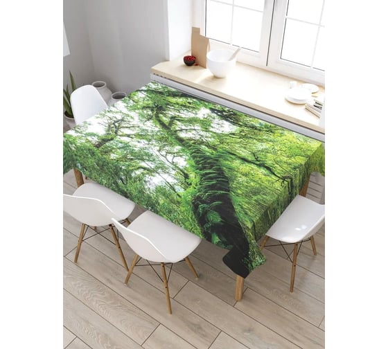 Прямоугольная скатерть из сатена JoyArty Тропический лес на берегу tc_8037_120x145