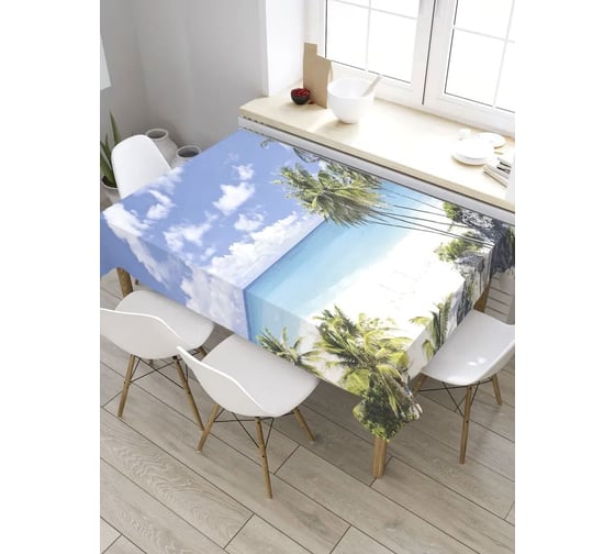 Прямоугольная скатерть из сатена JoyArty Тропический пляж tc_32081_120x145