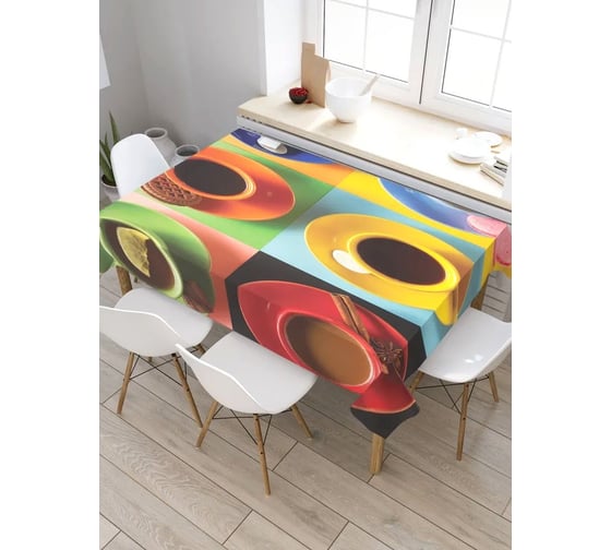 Скатерть прямоугольная из сатена JOYARTY Цветные чашки tc_29939_120x145
