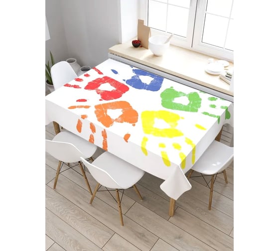 Скатерть прямоугольная из сатена JOYARTY Цветные ладони tc_29144_120x145