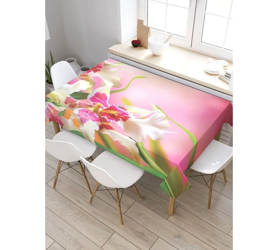 Скатерть прямоугольная из сатена JOYARTY Цветочная история tc_8083_120x145