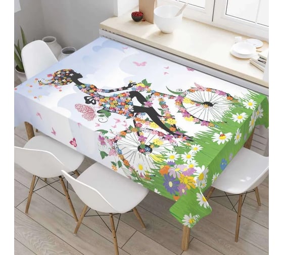 Скатерть прямоугольная из сатена JOYARTY Цветочная поездка на велосипеде tc_30307_120x145