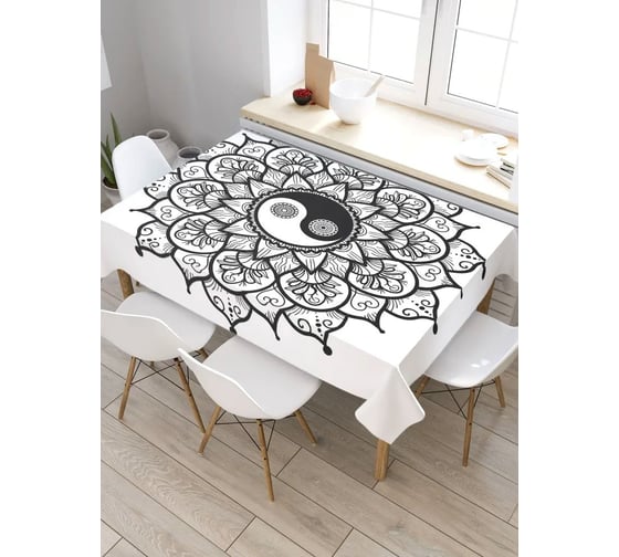 Скатерть прямоугольная из сатена JOYARTY Цветочный Инь и ян tc_18606_120x145